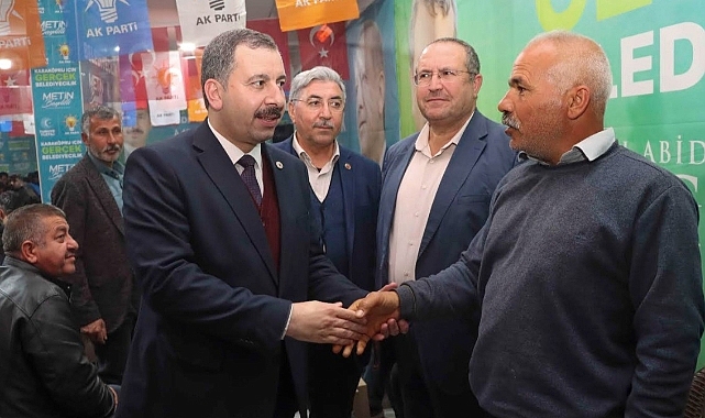 Başkan Baydilli seçim ofisine gelen vatandaşlarla hatıra fotoğrafı çekilirken, vatandaşların taleplerini de dinleyip not aldı.