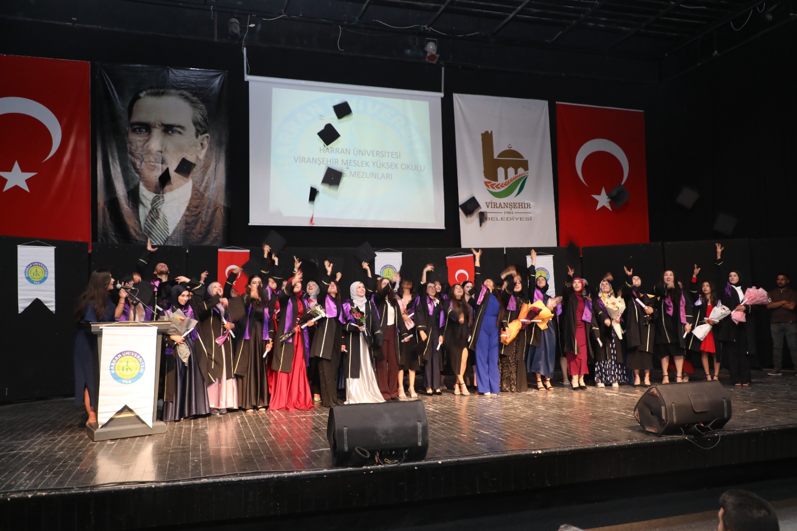 Viranşehir Belediyesi Eş Başkanı Serhat Dicle İnan, Belediye Başkan Yardımcıları Nuri Olcan ve Cebrail Temel ile birlikte, Harran Üniversitesi Viranşehir Meslek Yüksekokulu’nun 2024-2025 eğitim-öğretim yılı mezuniyet törenine katılarak öğrencilerin heyecanına ortak oldu.