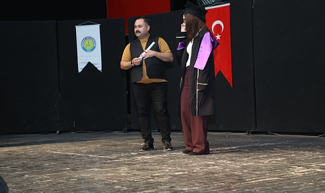 Viranşehir Kültür Merkezinde düzenlenen törende, okul birincisi Nur Melek Çetinkaya’ya diplomasını takdim eden Eş Başkan İnan, tüm mezunları tebrik ederek gelecek yaşamlarında başarılar diledi.