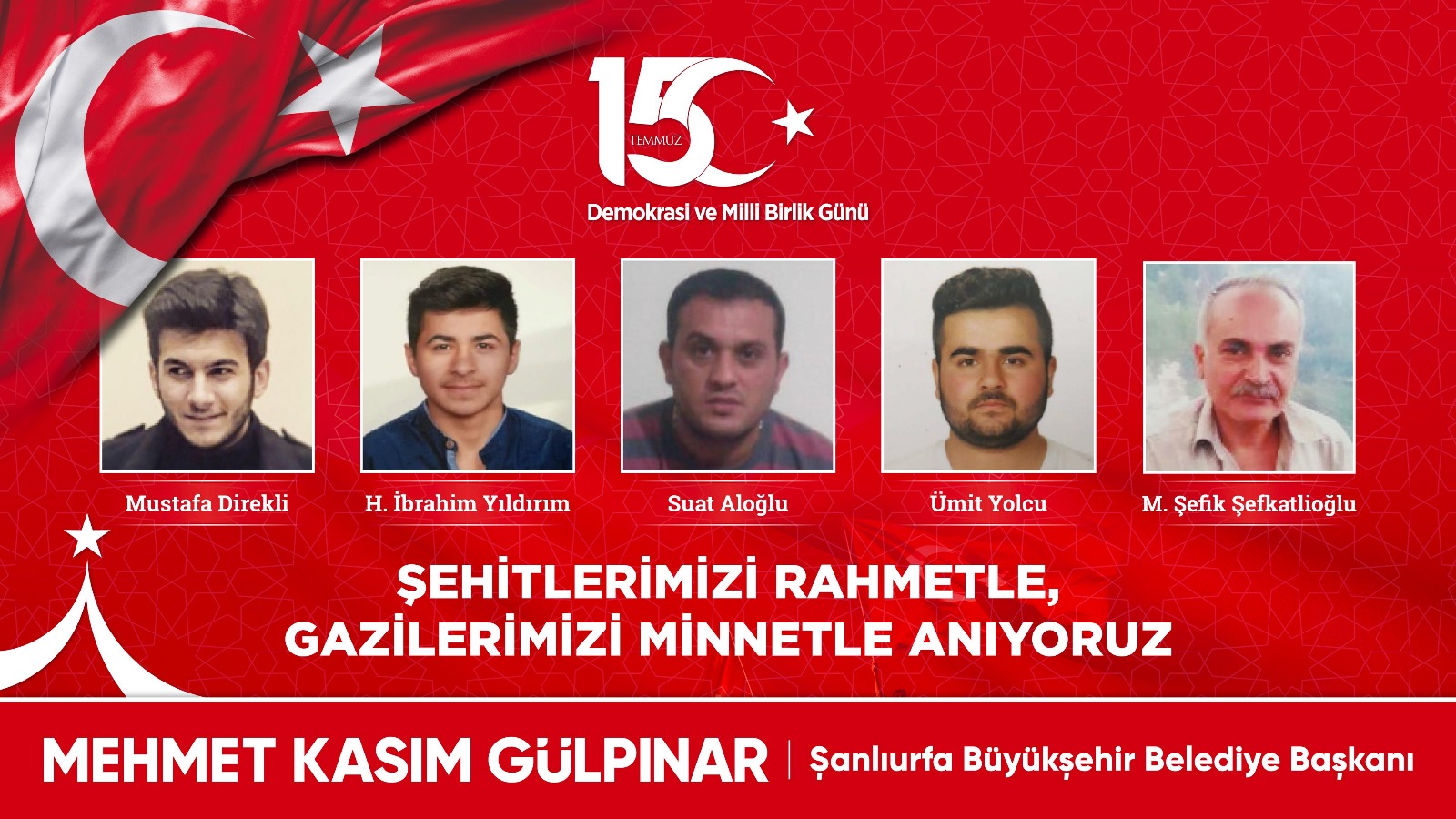 15 Temmuz 2016 gecesinde Türkiye, 251 vatandaşını şehit, 2 bin 190'ını da gazi verdi. Şanlıurfa olarak o gece 5 şehit verdik. 15 Temmuz gecesi FETÖ'cü alçaklar karşısında kanlarıyla tarih yazanlara ve tüm şehitlerimize Allah'tan rahmet diliyoruz.