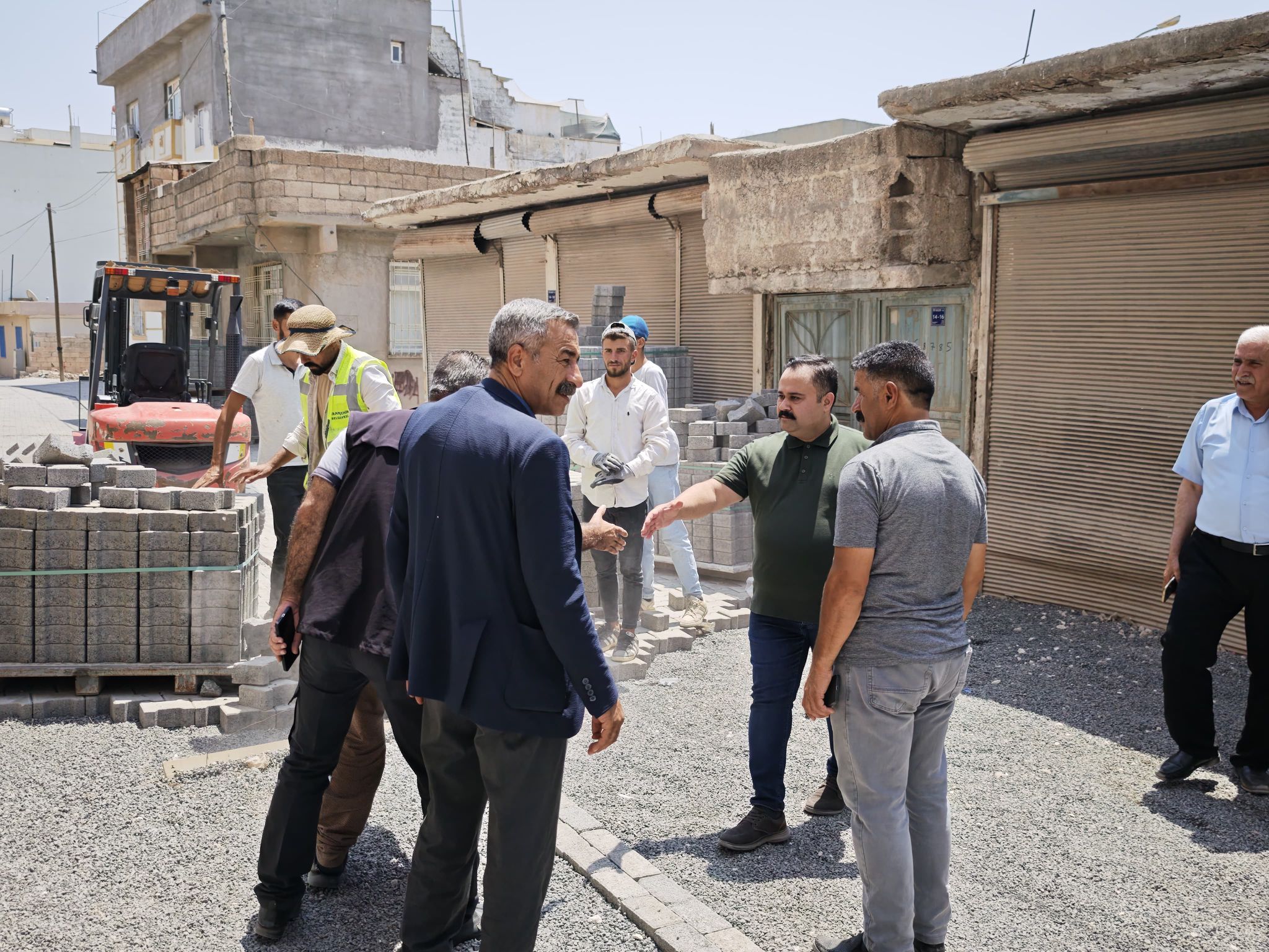 Viranşehir Belediyesi Fen İşleri ekipleri, ilçenin dört bir yanında mahalle, cadde ve sokaklarda yol bakım, onarım ve yenileme çalışmalarını kararlılıkla sürdürüyor. Planlanan takvim doğrultusunda Kale Mahallesi 104. Sokak'taki kilitli parke taşı döşeme çalışmaları devam ederken, Viranşehir Belediye Eş Başkanı Serhat Dicle İnan ile Başkan Yardımcısı Cebrail Temel de sahada yürütülen çalışmaları yerinde inceledi.