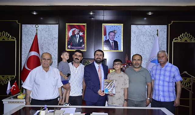 Ceylanpınar Belediye Eşbaşkanı Uğur Kahraman 2025 yılı İlköğretim ve Ortaöğretim Kurumları Bursluluk sınavında Türkiye birincisi olan Mustafa Uğur Temizer’i ağırlayarak tablet hediye etti.