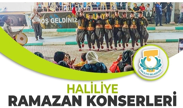 yaşayacak.Haliliye Belediyesi tarafından düzenlenecek Ramazan Konserleri takvimi ise şu şekilde:12 Mart Salı/ Şehit İbrahim Halil Yıldırım Parkı (Devteyşti Mahallesi)13 Mart Çarşamba/ Üzüm Parkı (Ahmet Yesevi Mahallesi)14 Mart Perşembe/15 Temmuz Parkı (Devteyşti Mahallesi)15 Mart Cuma/ Ahmet Yesevi Parkı (Ahmet Yesevi Mahallesi)16 Mart Cumartesi/ Şehit Ahmet Oktay Günak Parkı (Süleymaniye Mahallesi)17 Mart Pazar/ İbrahim Halil Karaduman Parkı (İmambakır Mahallesi)