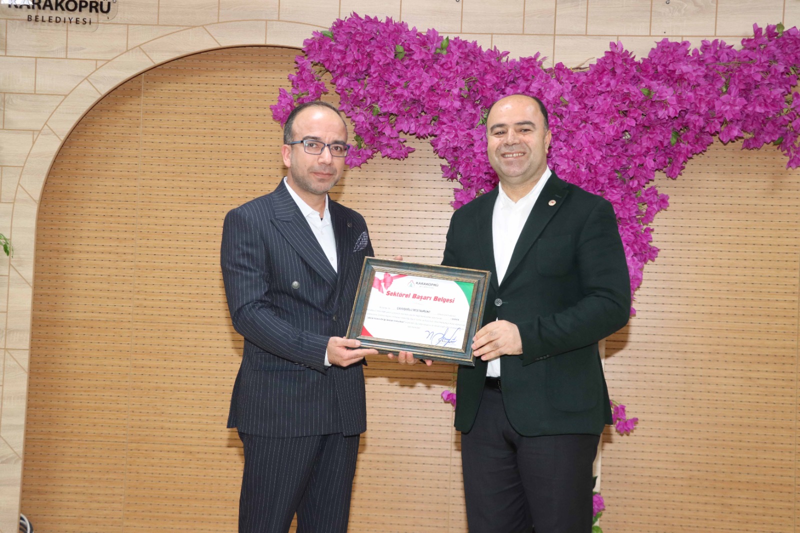 Karaköprü Belediyesi, ilçede faaliyet gösteren işletmeler arasında yapılan değerlendirmeler sonucunda belirlenen 66 esnafa tertip ve düzenlerinden ötürü Sektörel Başarı Belgesi verdi.Karaköprü Belediyesi, ilçede nizam ve özveriyle hizmet veren işletmeleri onurlandırmaya devam ediyor. İlçede örnek hizmet sunan işletmeler “Sektörel Başarı Belgesi” ile ödüllendirildi. Belediye Başkanı Nihat Çiftçi’nin katıldığı törende, vatandaş memnuniyeti ve çalışma disiplininde öne çıkan 66 esnafa belgeleri takdim edildi. Daha önce de gerçekleştirilen törenle 60 işletmeye sektörel başarı belgesi takdim edilmişti.Sektörel Başarı Belgesi alan işletmeler; hijyen, işyeri düzeni ve personel yeterliliği, vatandaş memnuniyeti ve çalışma disiplini gibi şartlar başta olmak üzere çeşitli konularda farklı müdürlükler tarafından titizlikle seçildi.Necmettin Cevheri Kültür Merkezinde düzenlenen belge takdim törenine Karaköprü Belediye Başkanı Nihat Çiftçi, belediye başkan yardımcıları, meclis üyeleri ve işletme sahipleri katılım gösterdi.