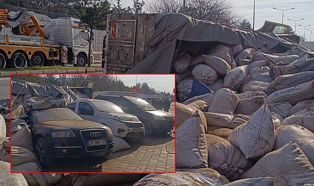 Saman Yüklü Tır Devrildi: 7 Araç Hasar Gördü