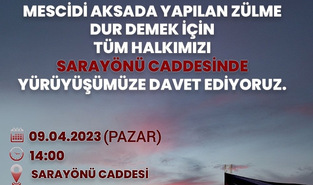 Yeniden Refah Partisi Şanlıurfa il gençlik kollarından çağrı var, tüm STK temsilcilerini mescidi Aksa'da Yapılan Zulme Dur Demek İçin basın açıklamasına davet ettiler.Pazar günü saat 14.00'da Sarayönü Caddesinde toplanması beklenilen kalabalığın, Mescidi aksada yaşanılanları protesto ederek, haklı seslerini duyurmaya çalışacaklar.